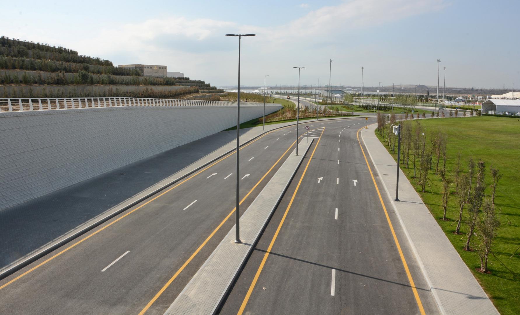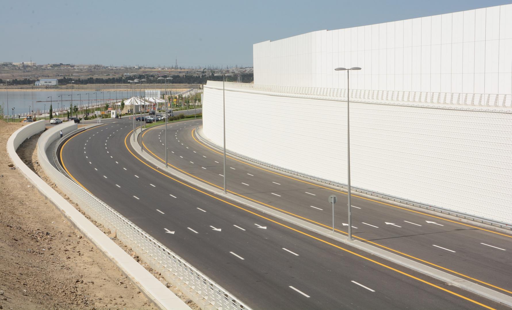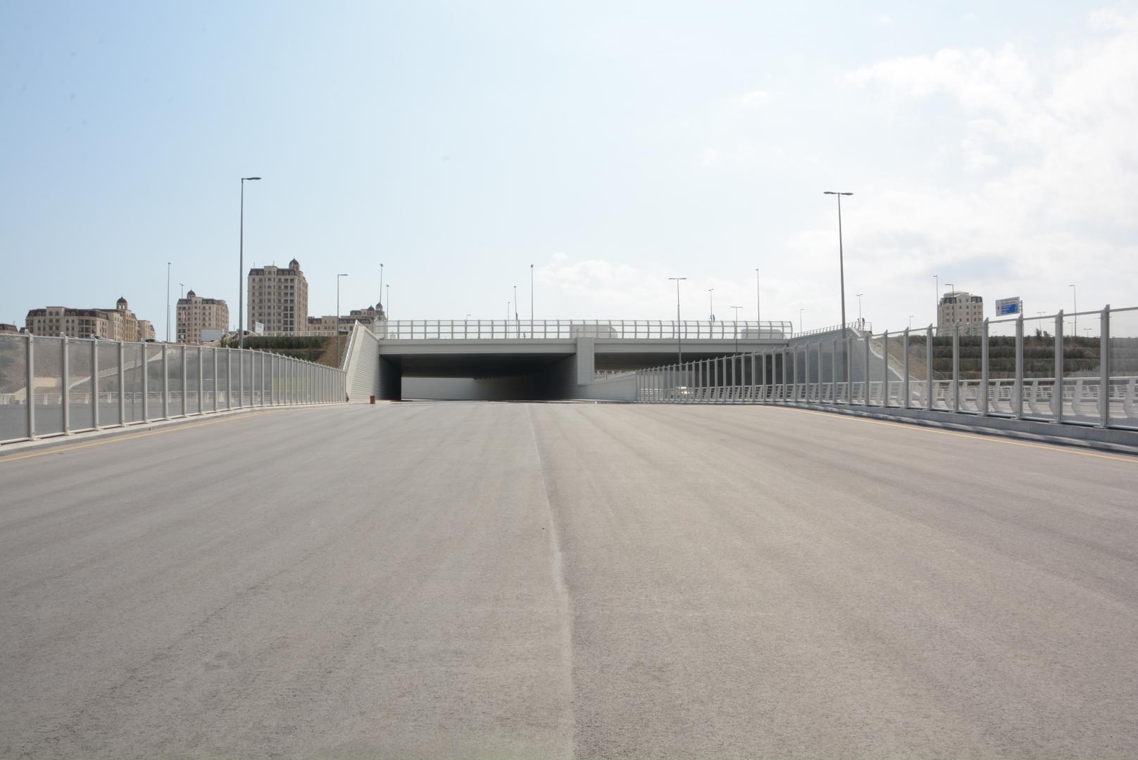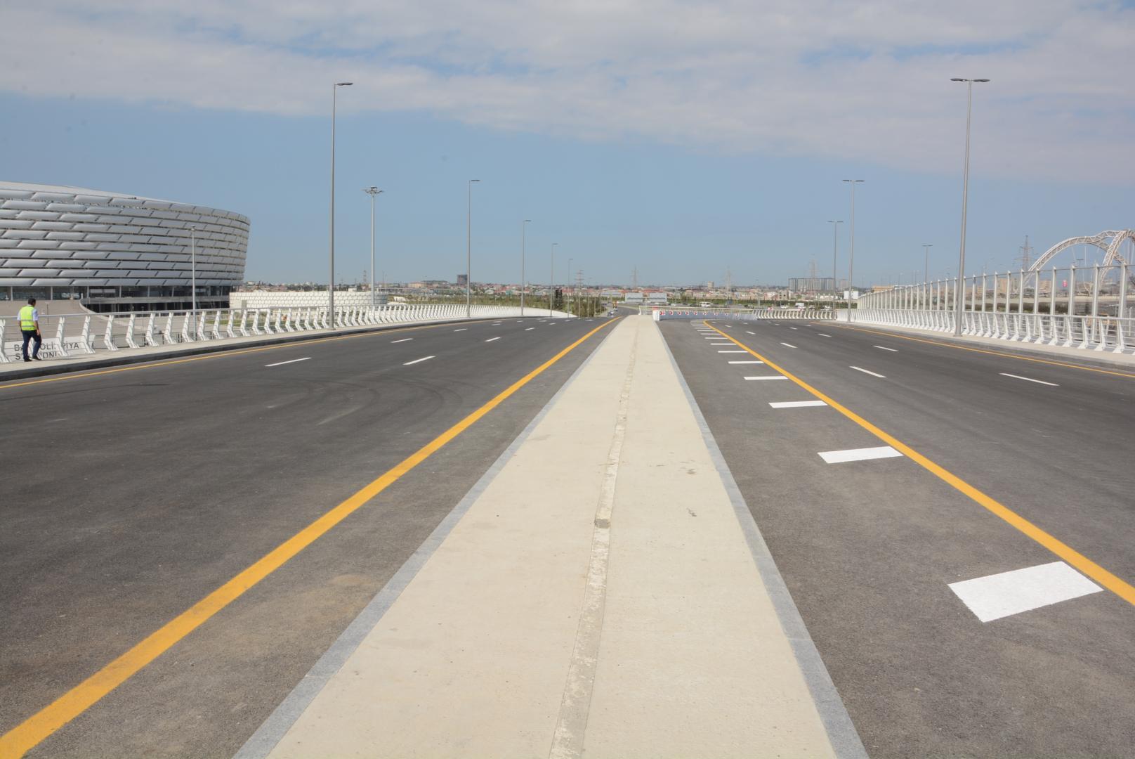 Həsən Əliyev küçəsindən Ziya Bünyadov prospektinə paralel olaraq metronun “Koroğlu” stansiyasına qədər yeni avtomobil yolunun inşasının birinci hissəsi əsasən Bakı Olimpiya Stadionu ətrafındakı əraziyə düşür. Burada işlər yüksək səviyyədə həyata keçirilib. Yol boyunca 2 körpü inşa olunub. Birinci körpünün uzunlüğü 205, ikinci körpünün uzunluğu isə 162 metrdir. Ərazidə uzunluğu 900 metrə, eni isə 30 metrə yaxın olan piyada yolu inşa edilib, yol üzərində iki tunel tikilib. Yolun qapalı hissəsinin uzunluğu 92, açıq hissəsinin uzunluğu 691 metrdir. Piyadalar üçün nəzərdə tutulan yolda 115 metr uzunluğunda kompleksə daxil olan üçüncü körpü də inşa olunub. Tuneldən keçən yollar Bakı Olimpiya Stadionu ilə Olimpiya şəhərciyini birləşdirir. Yarışları izləmək üçün avtobuslarla əraziyə gələn tamaşaçılar bu piyada yolu ilə Bakı Olimpiya Stadionuna rahat hərəkət edəcəklər. Bu layihənin reallaşdırılması dəgər tərəfdən metronun “Koroğlu” stansiyasına gələn bütün istiqamətlərdən həm şəhərin mərkəzinə, həm də Həsən Əliyev küçəsindən keçərək “Gənclik” stansiyası istiqamətinə qədər nəqliyyat əlaqəsini təmin edəcəkdir. Yeni avtomobil yolu, həmçinin Bakı qəsəbələrinin ölkənin beynəlxalq əhəmiyyətli magistralları ilə nəqliyyat əlaqəsinin asanlaşmasına kömək etməklə yanaşı, paytaxtın mərkəzi hissəsinin nəqliyyat yükünün azalmasına da öz təsirini göstərəcəkdir.