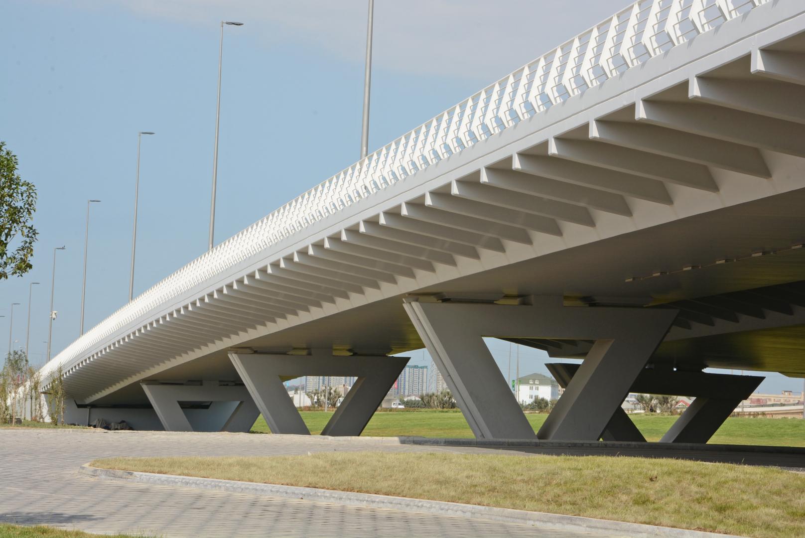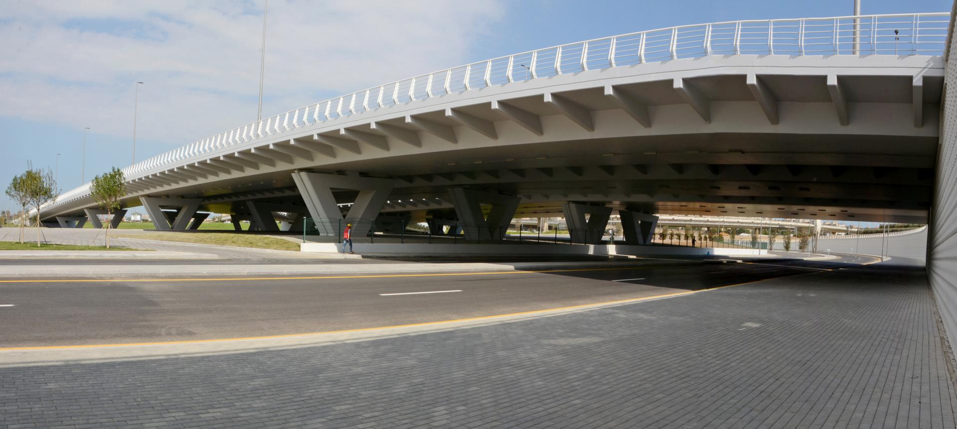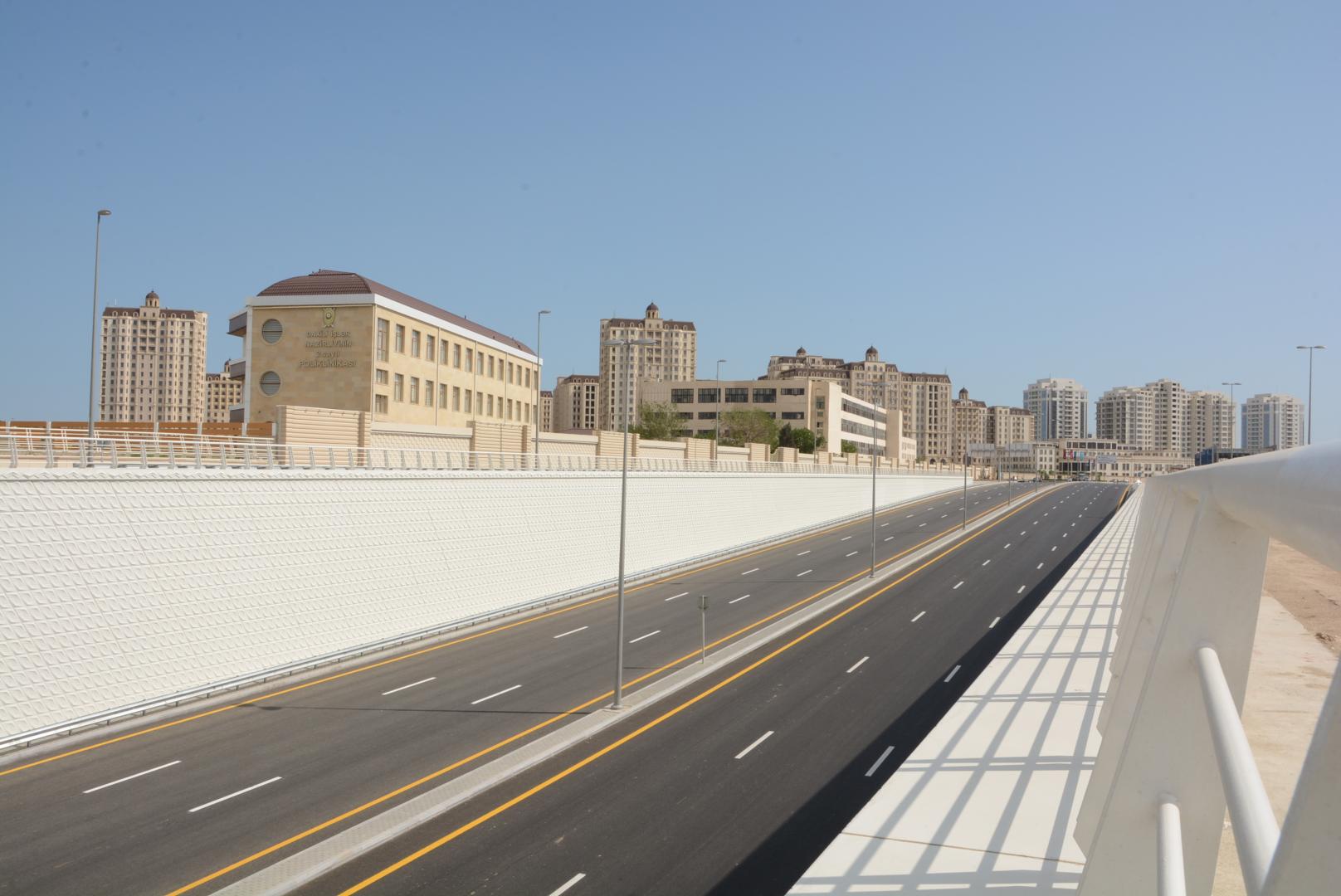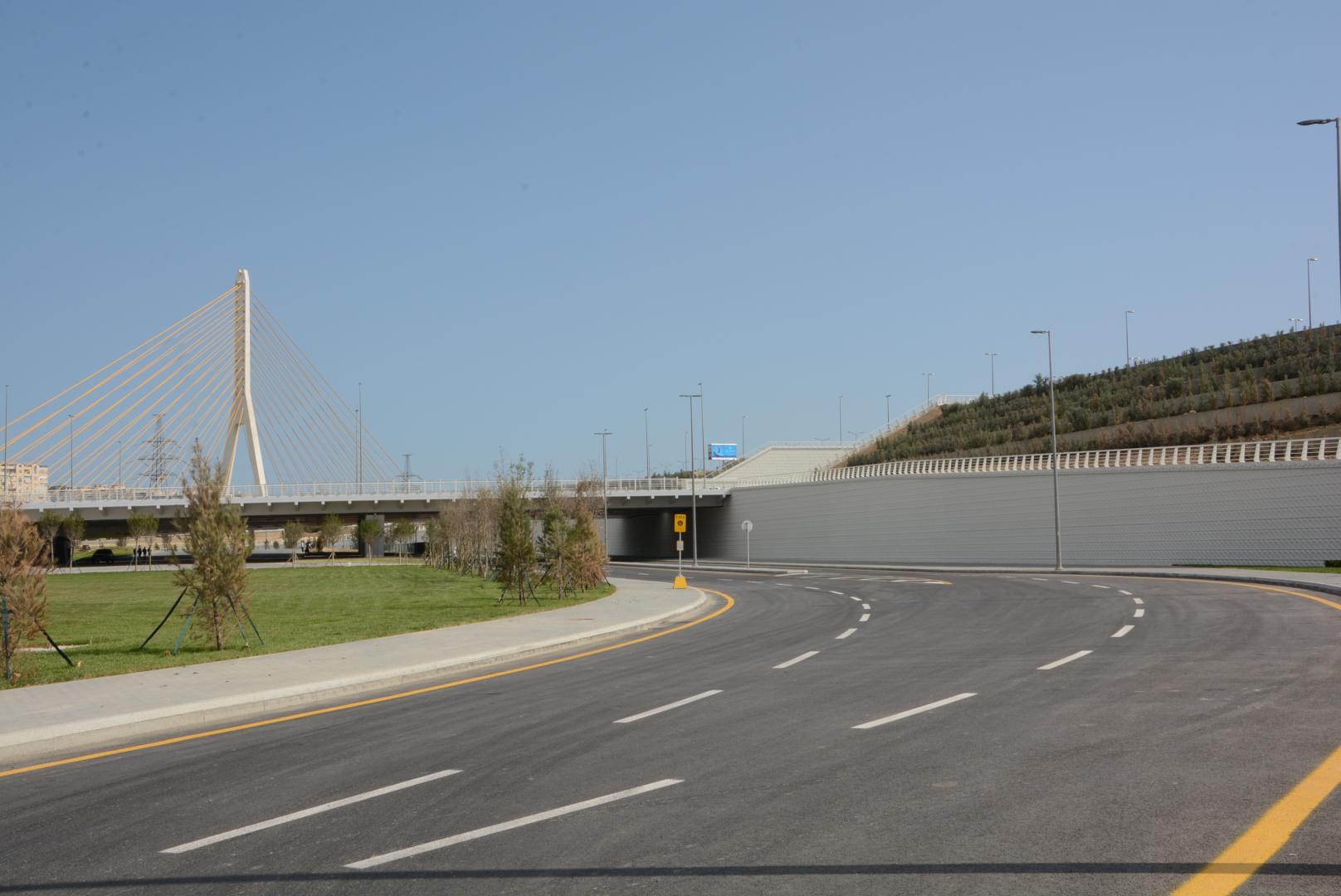Həsən Əliyev küçəsindən Ziya Bünyadov prospektinə paralel olaraq metronun “Koroğlu” stansiyasına qədər yeni avtomobil yolunun inşasının birinci hissəsi əsasən Bakı Olimpiya Stadionu ətrafındakı əraziyə düşür. Burada işlər yüksək səviyyədə həyata keçirilib. Yol boyunca 2 körpü inşa olunub. Birinci körpünün uzunlüğü 205, ikinci körpünün uzunluğu isə 162 metrdir. Ərazidə uzunluğu 900 metrə, eni isə 30 metrə yaxın olan piyada yolu inşa edilib, yol üzərində iki tunel tikilib. Yolun qapalı hissəsinin uzunluğu 92, açıq hissəsinin uzunluğu 691 metrdir. Piyadalar üçün nəzərdə tutulan yolda 115 metr uzunluğunda kompleksə daxil olan üçüncü körpü də inşa olunub. Tuneldən keçən yollar Bakı Olimpiya Stadionu ilə Olimpiya şəhərciyini birləşdirir. Yarışları izləmək üçün avtobuslarla əraziyə gələn tamaşaçılar bu piyada yolu ilə Bakı Olimpiya Stadionuna rahat hərəkət edəcəklər. Bu layihənin reallaşdırılması dəgər tərəfdən metronun “Koroğlu” stansiyasına gələn bütün istiqamətlərdən həm şəhərin mərkəzinə, həm də Həsən Əliyev küçəsindən keçərək “Gənclik” stansiyası istiqamətinə qədər nəqliyyat əlaqəsini təmin edəcəkdir. Yeni avtomobil yolu, həmçinin Bakı qəsəbələrinin ölkənin beynəlxalq əhəmiyyətli magistralları ilə nəqliyyat əlaqəsinin asanlaşmasına kömək etməklə yanaşı, paytaxtın mərkəzi hissəsinin nəqliyyat yükünün azalmasına da öz təsirini göstərəcəkdir.