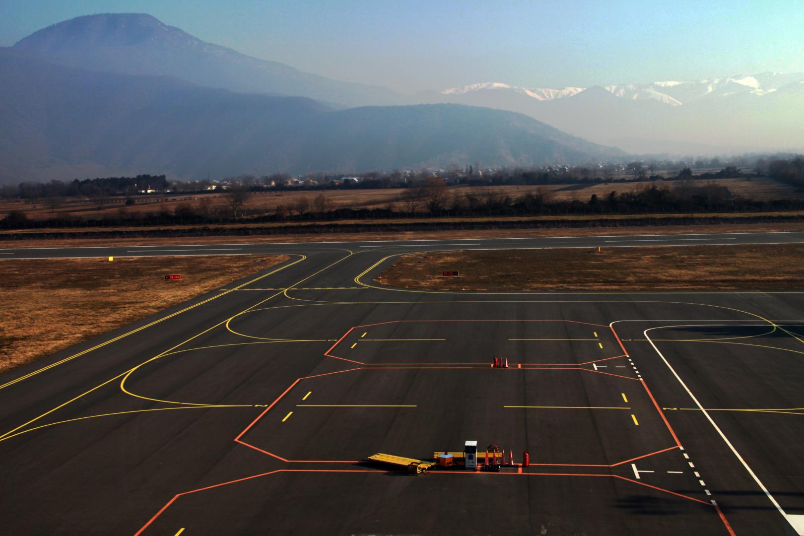 Uçuş-enmə zolağının (80 763 m2), perronun (10 450 m2), yönəldici yolların (2 743 m2), hava limanına giriş yolunun və daxili yolların (19 496 m2) yenidənqurulması aparılmışdır.