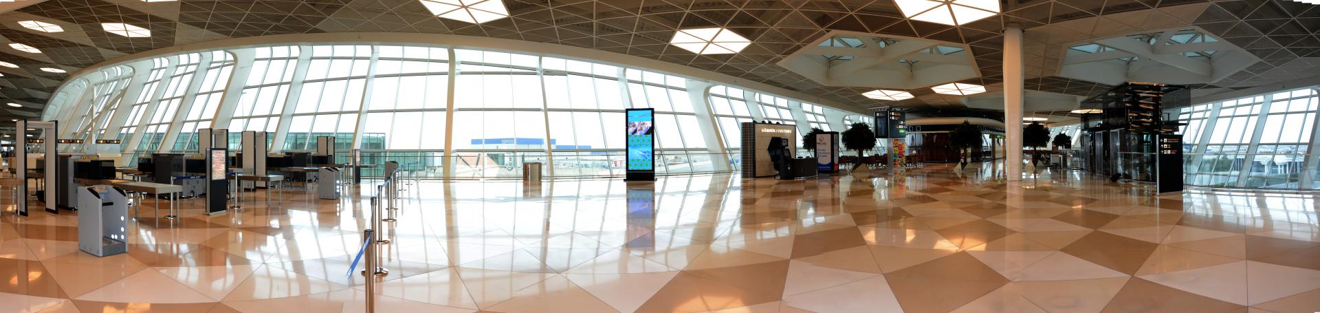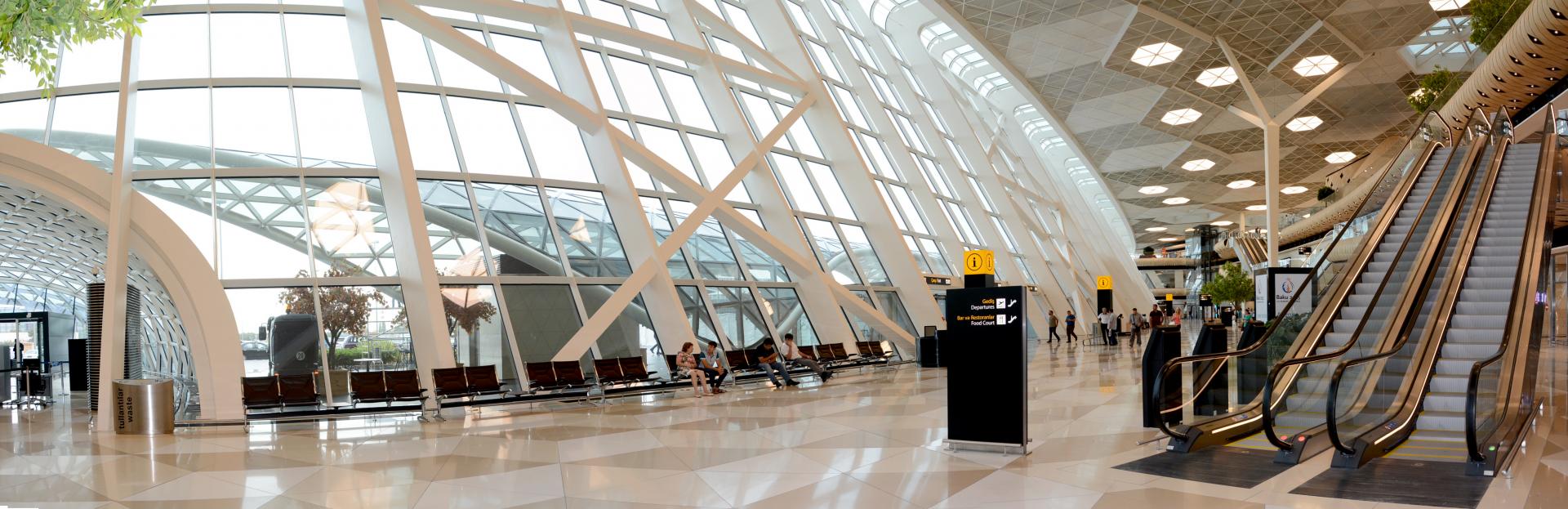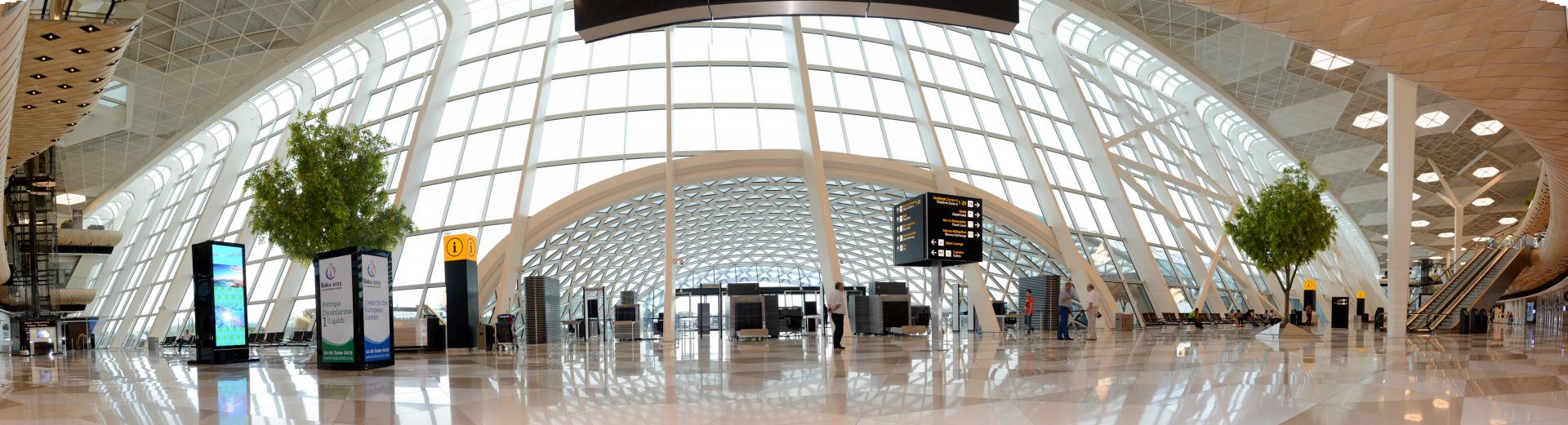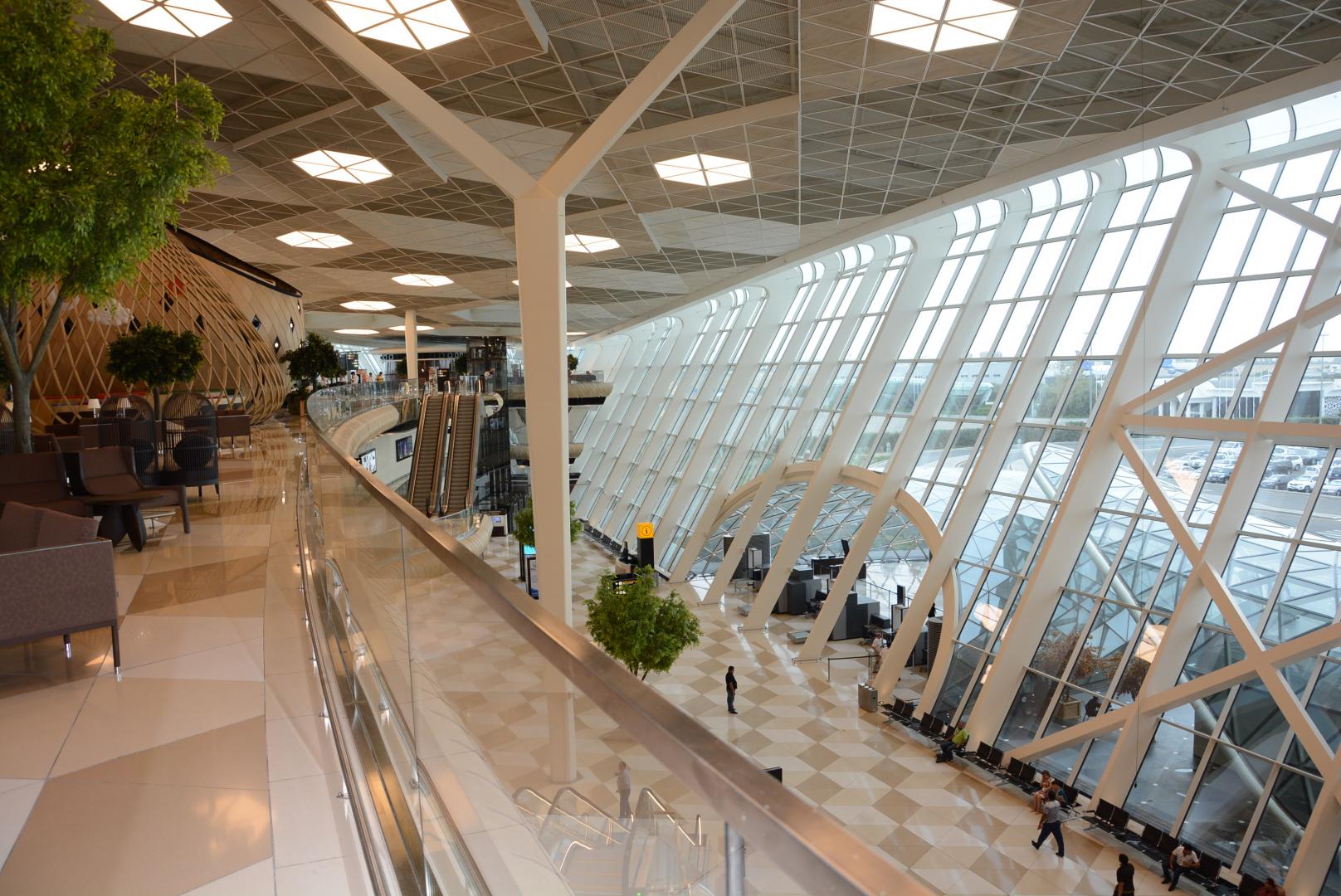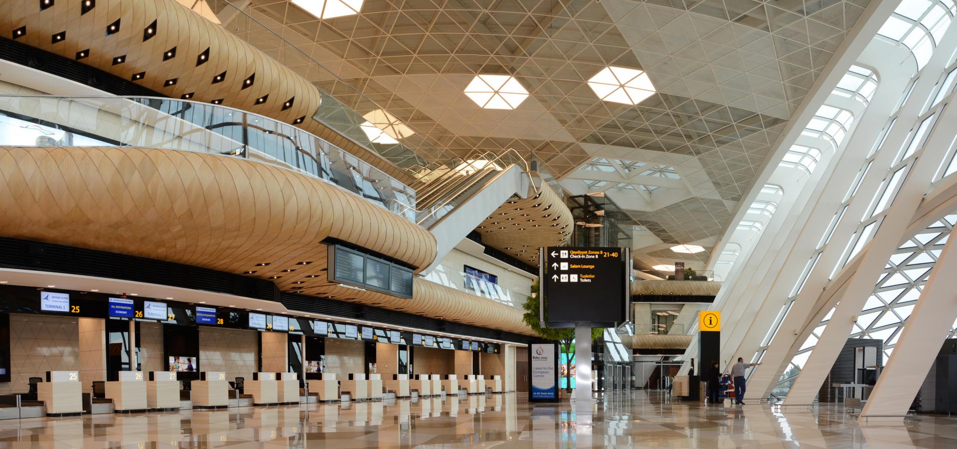 New Air Station complex within the project of "Construction of New Air Station Complex, Control Tower and Reconstruction of Existing Air Terminal in Baku city, Heydar Aliyev International Airport" opened to the public on April 23, 2014. Area of the new air station complex is 65 000 m2m2 and has 6 million passenger traffic capacity in a year. New four-storeyed air terminal in the shape of airplane wings, has outstanding architectural design. The purpose of the project was to improve the quality of passenger and cargo transportation services and bring flight safety in line with international standards.