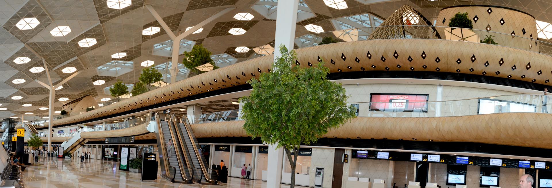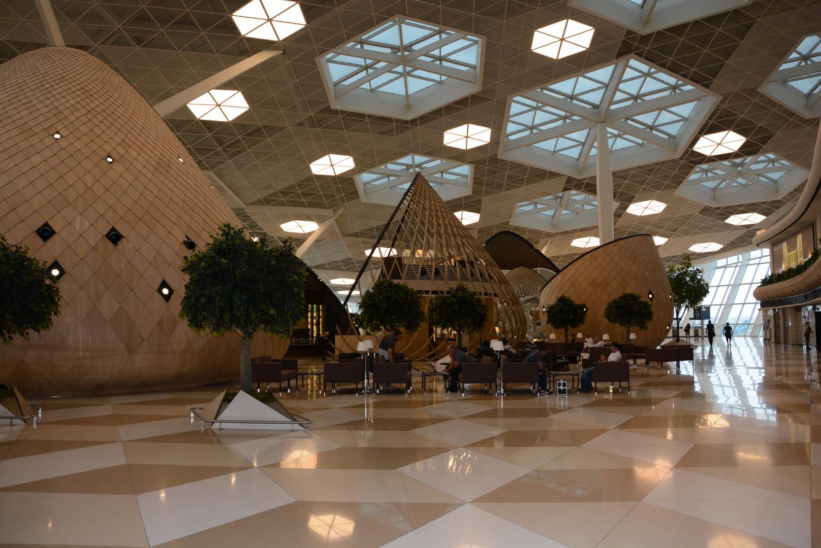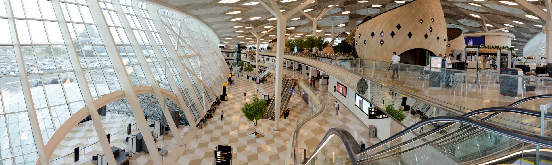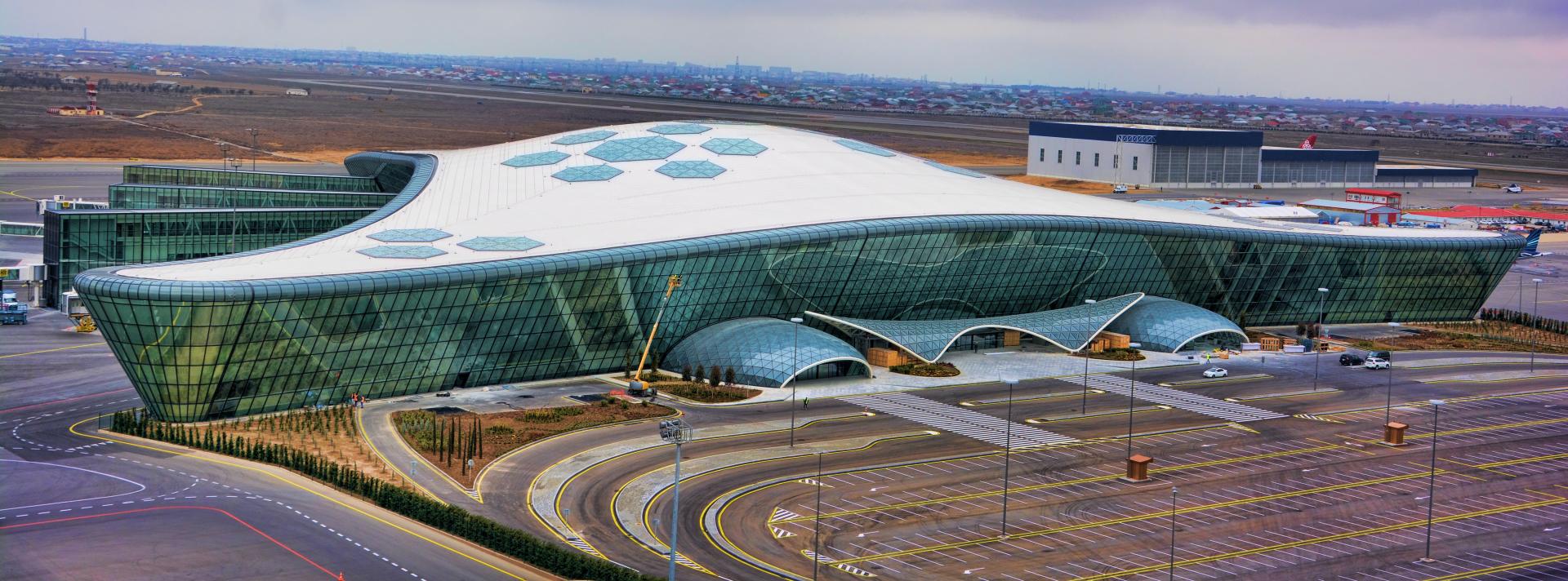 New Air Station complex within the project of "Construction of New Air Station Complex, Control Tower and Reconstruction of Existing Air Terminal in Baku city, Heydar Aliyev International Airport" opened to the public on April 23, 2014. Area of the new air station complex is 65 000 m2m2 and has 6 million passenger traffic capacity in a year. New four-storeyed air terminal in the shape of airplane wings, has outstanding architectural design. The purpose of the project was to improve the quality of passenger and cargo transportation services and bring flight safety in line with international standards.